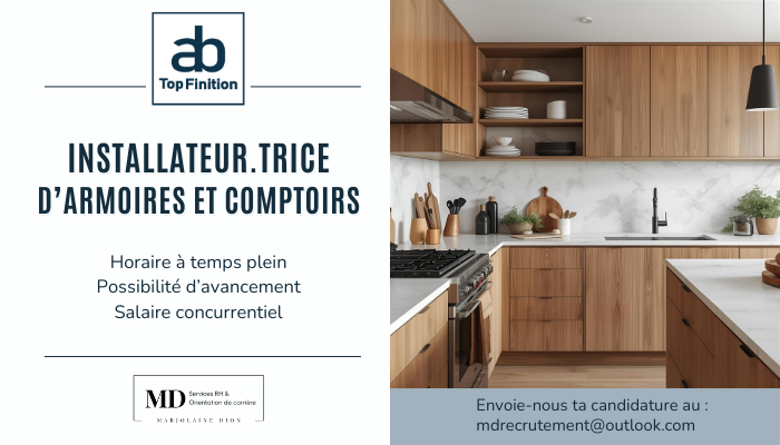 Installateur.trice d'armoires et comptoirs - Top Finition Ab Inc. - Chesterville