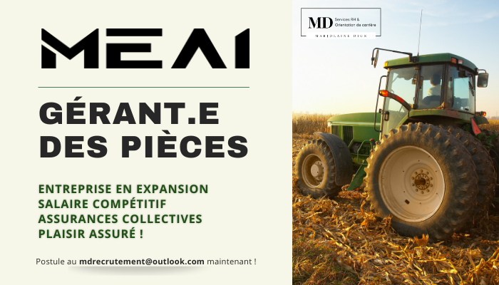 Gérant.e service des pièces - Martel Équipements Agricoles Inc. - St-Christophe-d'Arthabaska