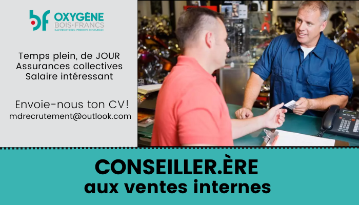 | Conseiller.ère aux ventes internes - Oxygène Bois-Francs - Victoriaville |  |