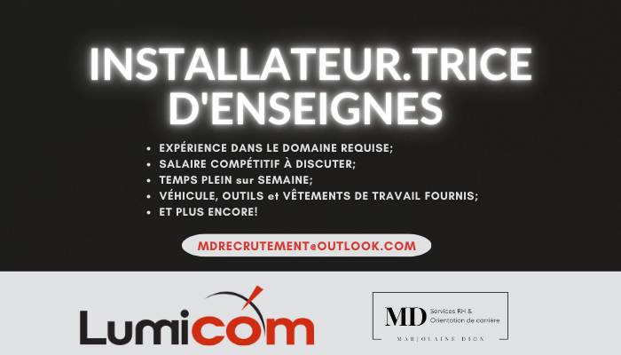 | Installateur.trice d'enseignes - Lumicom - Victoriaville |  |
