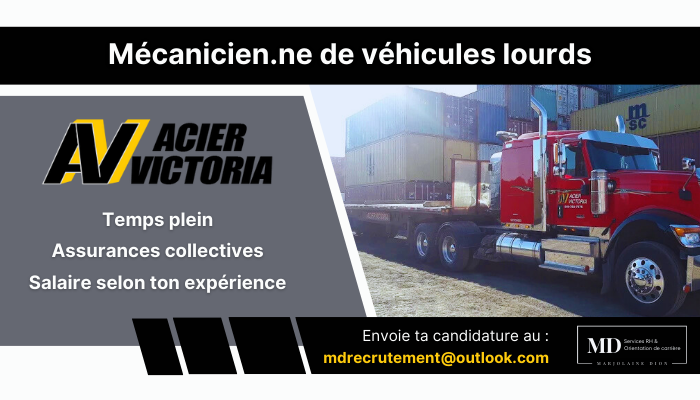 | Mécanicien.ne véhicules lourds - Acier Victoria - Victoriaville |  |